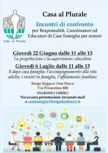 Il primo è il 22 giugno, dalle 11 alle 13, e al centro del confronto c’è la progettazione e la supervisione educativa. Il secondo è il 6 luglio, dalle 11 alle 13, e il tema è “Il dopo casa famiglia: l’accompagnamento alla vita adulta, i rientri in famiglia, l’affidamento familiare“.